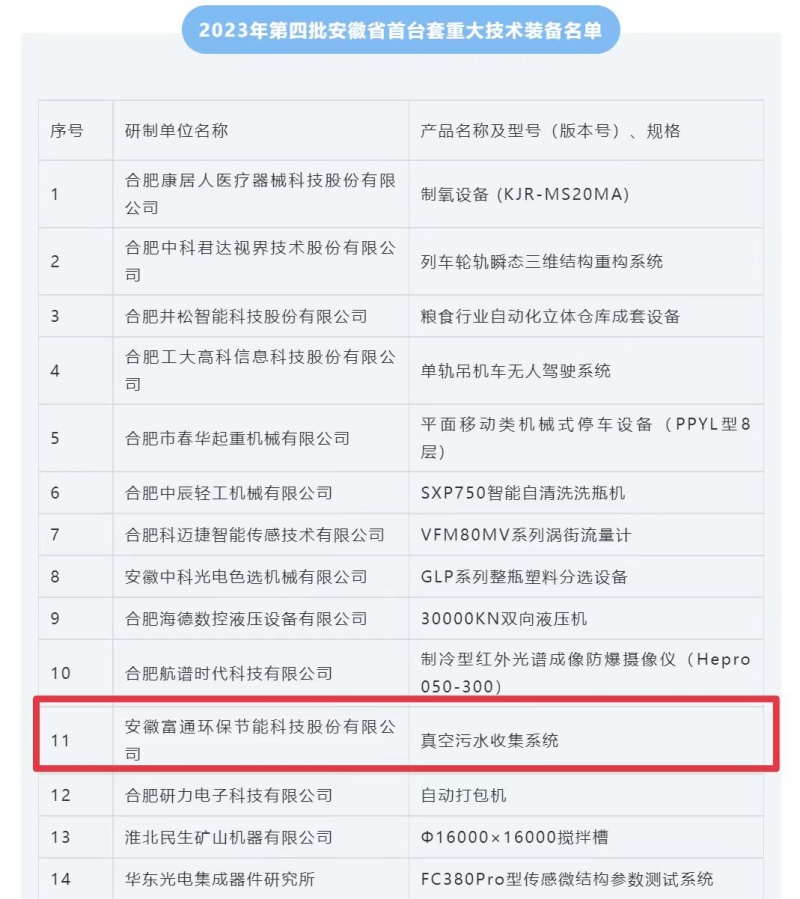 祝賀!我會(huì)副會(huì)長(zhǎng)單位安徽富通環(huán)保在安徽省經(jīng)濟(jì)和信息化廳公布的2023年第四批安徽省首臺(tái)套重大技術(shù)裝備中榜上有名!